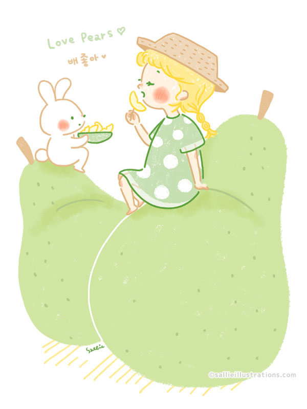 Love pears 2025年12月22日 最終更新日時 : 2026年1月24日 info@sallieillustrations.com かたちは洋梨、風味は和梨がすきかなぁ🍐(2025 / Photoshop)