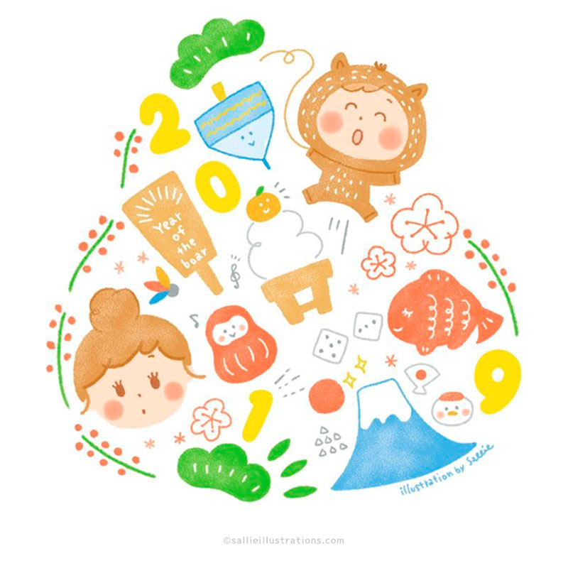 Happy New Year 2019 2025年9月25日 最終更新日時 : 2026年1月23日 info@sallieillustrations.com 2019年は息子と過ごす初めてのお正月でした。たくさん笑ってたくさん泣いて…そんな1年になりますように。(2019)
